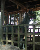 頂上には展望台の他にレストランが2軒。その一方はインドレストランらしい。当然道は繋がっているので進入禁止を無視して上まで車で上がってくる人も居る。賑やかになりだしたところで頂上を散策。中央に古い金毘羅さんの祠がある。お祭りされているのかどうか定かでないほどに荒れていたが、側に銅像の立派な神馬が置かれていた。初代は江戸時代の終わりに奉納されたそうだが、太平洋戦争時に供出され、昭和55年に作り直されたものだそうだ。