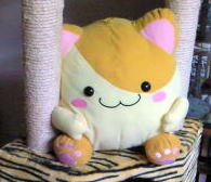 本日は私の誕生日。昨日は早々とマーミ&ジュンちゃんが「これなら姉さん喜ぶだろう」と猫型クッションをどこかのゲームコーナーでゲットして来てくれた。