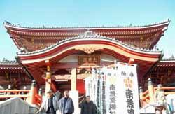 最後は大須観音。駐車場から12月に行った科学館の丸い建物が見えるのを反対方向へ。しばらく大通り沿いに歩くと急に朱色のお寺が見えてくる。記念写真を撮ってお参りをしてから反対方向にある商店街を自由散策。吉祥寺のアーケード街のような中をホイホイと歩いている内に皆とはぐれ、渡された地図からもはみ出してしまったようで、お稲荷さんを拝んで同じ道を戻って何とか時間内にバスにたどり着いた。