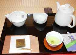 昼日中の道を引き返し、途中茶茗館でお茶。ここは体験型で、お茶室でお茶の淹れ方を教えてくれ、自分で淹れて飲む。平日なのでお客も少なく、ゆっくりお茶を味わって、だいぶ落ち着いたお庭を散策、水琴窟の音を聞いたり巨大化した鯉を見たりして帰り道。