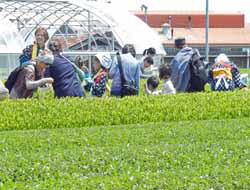 ちょうど連休中の明日まで世界お茶まつりで金谷のお茶の郷と静岡空港を会場に宣伝も打っていたのだが、さすがに混んでいた。お茶の郷は駐車場に入るまでにグルリと茶畑の中を1周させられる形で待たされて延々30分強。売店をサラリと見た後は茶畑の中をあちらこちらして写真撮影。新芽はきれいだが、あちらこちらでお茶つみ(刈りだが)中という訳ではない。お茶の郷のイベントで茶摘み娘姿で手摘み体験をしている子供さん達がいた。