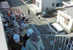 自治会の主な役員さんが交代した事や津波を想定して自治会全体での集まりでなかったので、後は訓練終了の放送を残暑の中で待つだけというのはちょっと良いのかなぁと思った。また、前で何か話しているようだったが後ろまで音が届かず、本番だったらもっと全体の混乱を抑えるための手段を考えなければならないだろうと思った。