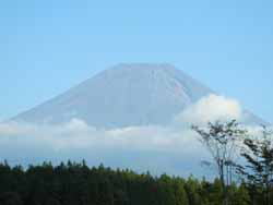 朝霧高原の道の駅で一休み。秋空にまだ雪のない富士山がドンとそびえていた。