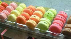 前回の『俳句でおしゃべり』のお題にマカロンが出て以来、マカロンづいている。実はしばらく前からデパートなどで華やかな色があふれ出すように並んでいるのを見て流行っているんだなとは思っていたが、どちらかというと和菓子好きなので買って食べてみようかという気にはならなかった。和菓子も色とりどりではあるが、マカロンの色は食品としてはいささか彩度が高過ぎてインパクトが強すぎた。