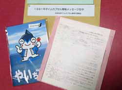 「公会堂でタイムカプセル展があるんだって」という話を「へぇ~、何が出てくるんだろうね」と他人事に聞いていたのだが、自分が出したものが戻って来て驚いた。