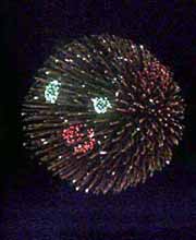 マーミの友達一同とこちらの一同の合同でやる花火の宴会は1年1度会うメンバーがたくさんいる。早くに着いて明るいうちは子供達がボール遊び。瑞穂の長女はもともとの子供好きの上に高校でも専攻をしているので実に上手にまとめてくれる。程々陰ってきたところで子供は夕飯、大人は飲み会。そうこうしている内に辺りも暗くなの花火大会の始まり。後はひっくり返って花火を楽しむ。