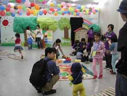 懇親会終了後、友人とクラブの様子を見に行く。今年も『子供も楽しめる収穫祭』をテーマに遊びの空間を作っていた。今年は工作だけでなく子供たちが身体を動かせるスペースを確保して、ノビノビとした空間が作られ、子供達も楽しそうに遊んでいた。
