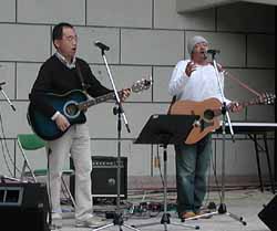 売店でうどんを食べて少し早めに野外音楽堂へ。こちらのスタートは少し遅くなったようで、2人前の人が熱唱していた。