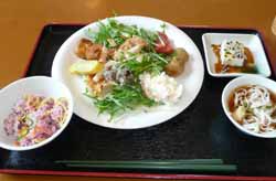 ここから袋井市に向かい、元浅羽町のどんどこあさばのアグリレストラン陽だまりでお昼。1人\1.500のバイキングだが、野菜中心で薄味なので結構たくさん入る。もっともTANUKIはそれほど食べず、我々は何度も席を立ってデザートまでたっぷりと食べた。