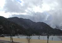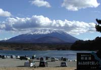 スタートがam10:30と遅かったので、渋滞にははまらずにすんだ。東名の富士ICから北上。朝霧高原の広々とした景色を楽しみながら道の駅・朝霧高原で一休み。次いで本栖湖へ。道の脇には今朝降っていたという雪が残っている。お土産屋のおばさんとおしゃべりをした後、精進湖へ向う。こちらは影になる道は雪が凍りつき、藪の影は真っ白。別世界へ来たようで楽しい。そのうち空からも何やら過るようになってきた。精進湖は所々氷が張り、影の側には雪も残っている。それでいながら日溜り側ではボートの釣り人がのんびりと糸を垂れている。