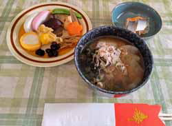 富士の大地ラーメン(ハム・もやし・人参・小松菜) おでん(白はんぺん・黒はんぺん・ナルト・竹輪・蒲鉾・さつま揚げ・がんも・大根・ジャガイモ・こんにゃく・昆布・餅入り油揚げ)