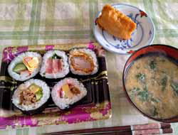 お昼の太巻きは恵方巻のお試しセット。色々あるけどオーソドックスなのが美味しい気がします。 by DORA