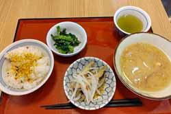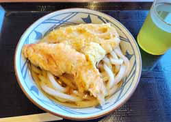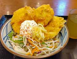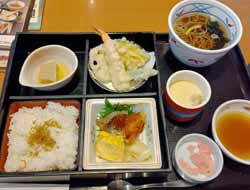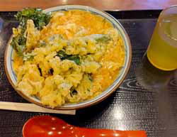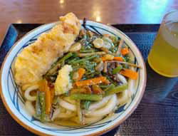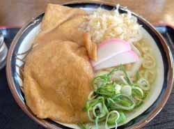 塩バタカマンうどん(かき揚げ・タラの芽の天ぷら) 稲荷寿司