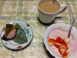 お彼岸の中日なのでぼたもち。今日のは和菓子屋さんので、お彼岸のお中日1日だけ販売するお店のだって。