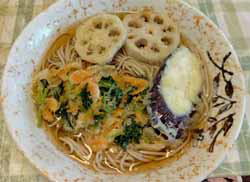 ヨーグルト(プロテイン)うどん(卵・鶏肉・かまぼこ・煮しめ・京菜)