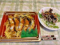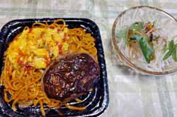 お昼はスーパーのお弁当とサラダを買ってきたDORAおばさん、慌ただしくて写真撮り忘れたって。