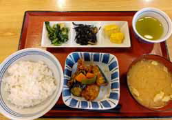 トースト(蒸し鶏)スパゲッティ(茄子ミートソース・京菜)