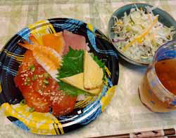 今日のお昼はスーパーのお寿司。猫が気が付かないほど魚のニオイしなかった…。ご飯小さかったけど600円しないんだって。