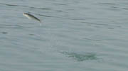 釣り好きの1名を除いて飽きてきた頃、あまりポンポンと飛ぶ魚を写真に取ろうということで、皆でチャレンジ。結局写ったのはTANUKIの1枚だけだったが、ボラだけでなく鯉も跳ねていた。