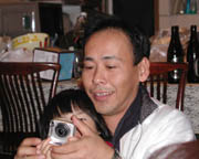 藤守の末っ子は従兄姉の中でも最年少。甥っ子の娘にまとい着かれて戸惑っていた。この子もずいぶん大きくなって、向けられるカメラに興味津々。自分も写すんだとカメラを持つ。幼子がカメラ構える新年会 DORA
