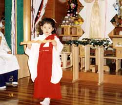 この春、日比の孫娘も吉備舞でデビュー。神前での奉納舞だが、ずいぶん堂々とした舞いっぷりだったようだ。