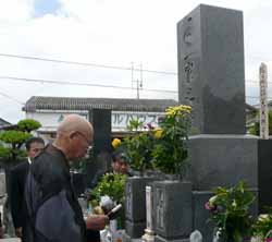 狭い教会の前の道まで霊柩車とマイクロバスが入ってきて出棺。さほど遠くない火葬場はお墓の真ん中に火葬施設だけがある小さなものだった。お寺のものらしく小さなお堂も側にある。そこで祝詞があげられ棺の上に玉串が捧げられて火葬された。