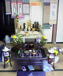 家でお坊さんを迎えてまずお経。お経の後でお坊さんが戒名の意味を説明してくれた。最後に「是非息子さん達のお嫁さんを皆さんで探してあげて下さい。」ここの家もお寺から近くて叔父さんとお坊さんは仲が良いらしい。