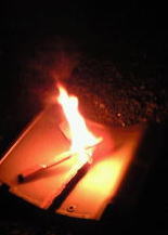そして夜、気まぐれに家で迎え火をたいた。もともとT家は熱心な仏教徒というわけでもないので盆棚もしつらえてはいないし、父の初盆も昨年終わらせたので意味はないのだが、昨年のたいまつが残っていたのでほんの気まぐれ。夜気の中で小さな火を見つめていると虫の音がにぎやかだった。
