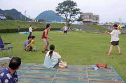 今回の花火見物メンバーはマーミ夫妻とTOPPOさんと従妹一家と我々。まだ孫っ子が小さいので今年も瀬戸川の河口の河川敷へ。車を近くにつけたいので明るい内に行ったが、時間制限のある港まで行くよりはずっと楽。早速芝生の上で孫っ子を中心にボールで遊び始める。川で魚のはねるのを見ている内に釣竿も登場。小魚の団体さんが居そうだったが釣れなかった…。