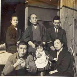 昭和31年 三鷹の家で 前列の男性が話題のおじさん 後列右が世田谷の伯父(曾祖母にとっては孫) |