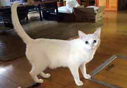 介護用ベットの上でテレビを見ていた叔母さんも血色は良くお元気そう。お姉さん猫のミケはすぐに顔を見せた。行違ってしまった従妹(次女)も帰ってきて4人でおしゃべり。家全体が明るくなったなと思ったら、隣の公園が整備されてだいぶ木が無くなったようだ。すぐ下が遊歩道で池がよく見える。その家の敷地側は犬のプクちゃんのテリトリー兼散歩道。窓から顔をのぞかせたはいいが知らない顔が見えてちょっとビビってしまった。そして末っ子の白猫ラッキーも登場。実は私が来た時に部屋の扉を開けっぱなしにして話し込んでしまい「ラッキーはどこ」とひと騒ぎをしたのだが、本猫はそんなことは全く関係なく、奥から堂々の登場。