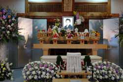 皆さんが集まり始めているのに急がされて霊前で親族の集合写真。もちろん葬儀屋さんも撮ってくれるが、日比の従弟のカメラや私のカメラでも撮ってもらった。