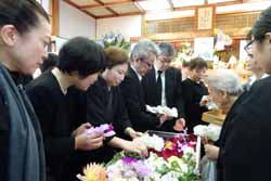 どの宗教でもこういう場合は亡くなった人の履歴を述べる(2月の仏式の時もそうだった)ようだが、父の・母の親達の代からの歴史が語られた。最後に皆で玉串をささげて終了。